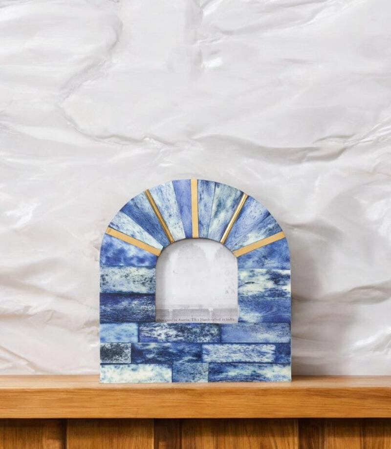 Transformeer je dierbare herinneringen in prachtige displays met de Aria Frame. Gemaakt van ethisch verantwoorde, diervriendelijke bottegels in rustgevende tinten blauw, voegt deze handgekerfde lijst een vleugje verfijning toe aan elke ruimte.