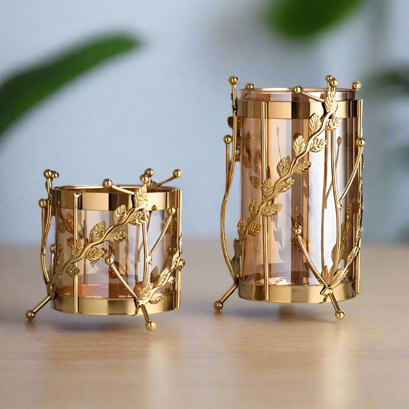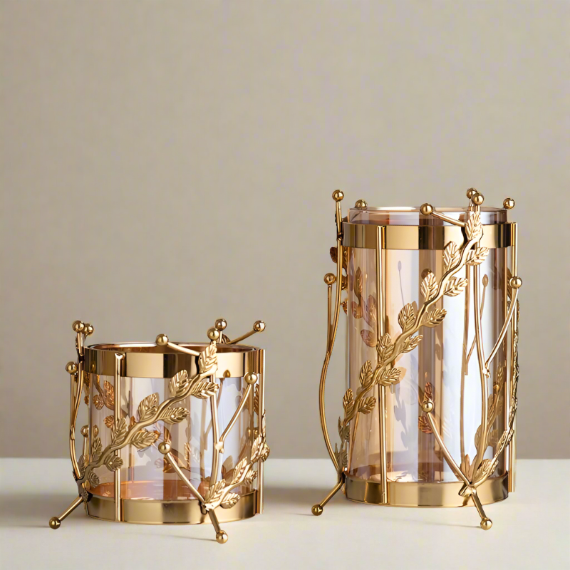 Transformeer uw woonkamer met de Aura Elegance Multifunctionele Metalen Vaas. Deze prachtige vaas combineert moeiteloos stijl en functionaliteit en dient als een betoverend bloemstuk of een chique kaarsenhouder, waardoor de sfeer van elke kamer in uw huis wordt verbeterd.