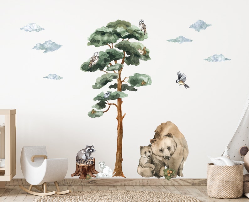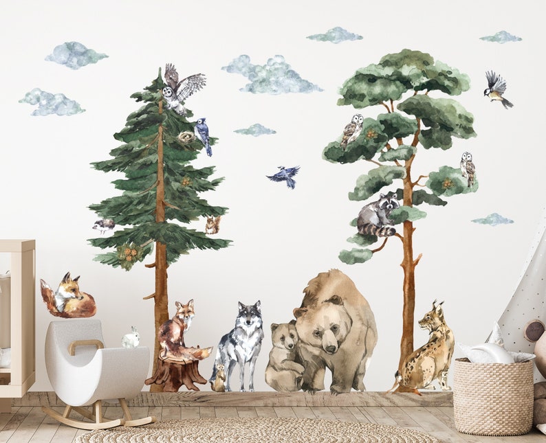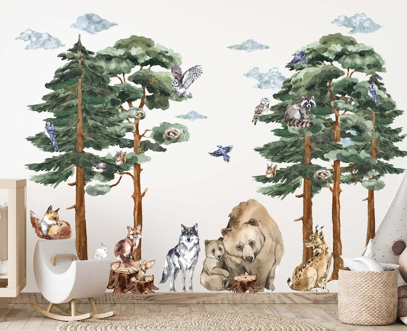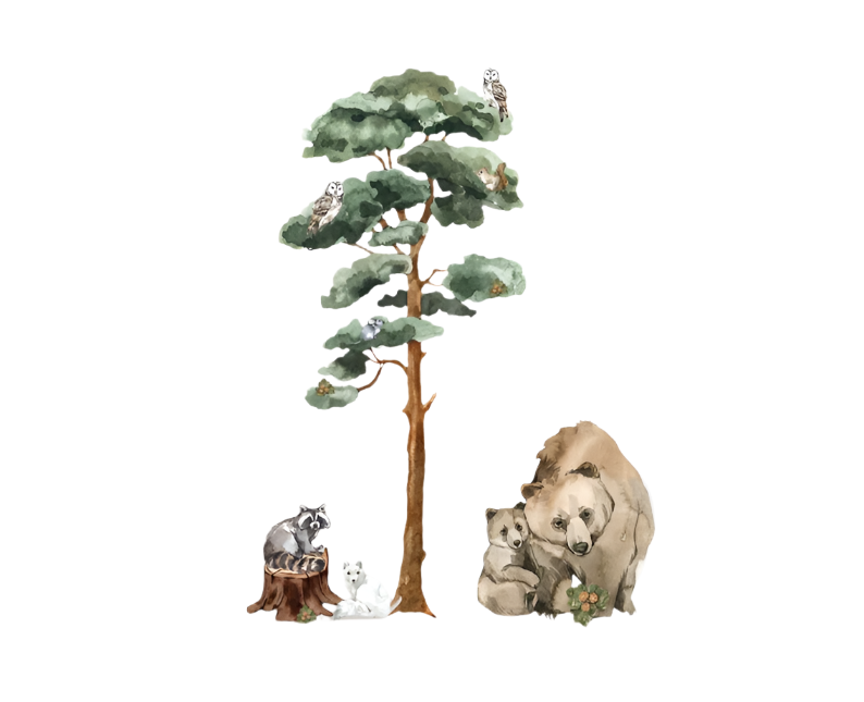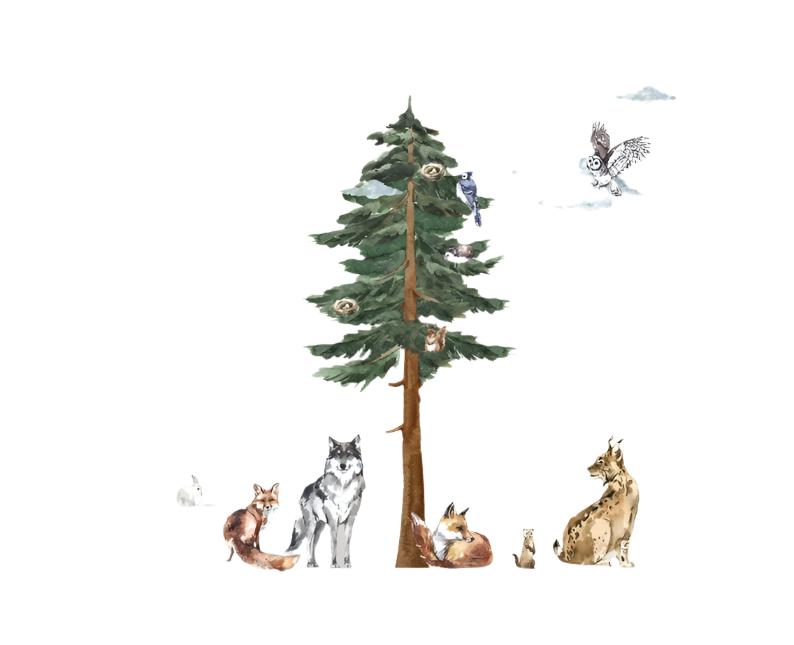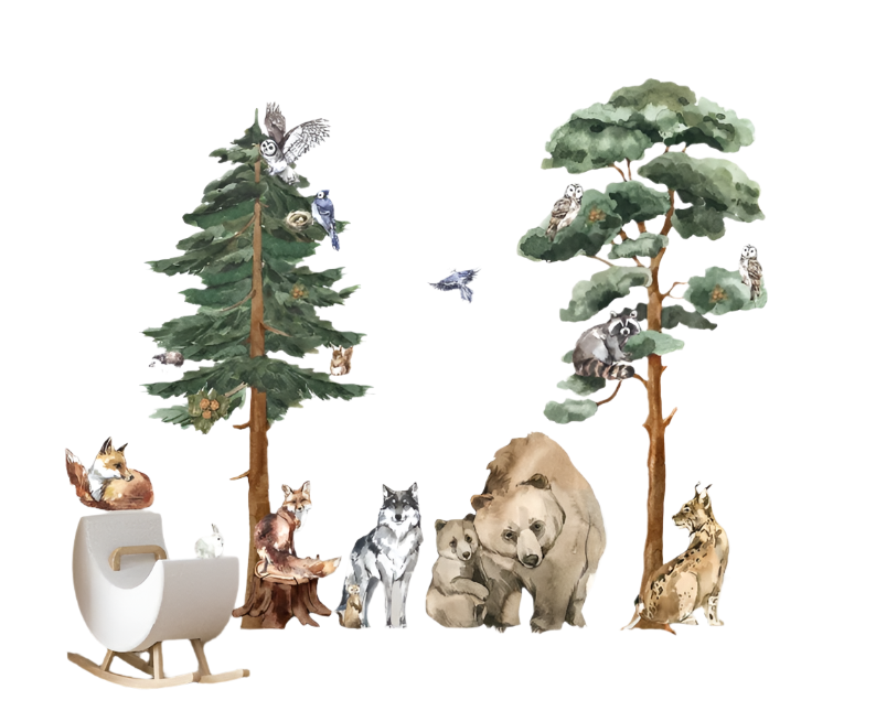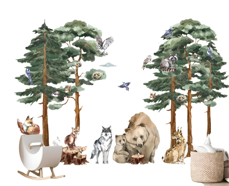 Breng de serene sfeer van het bos naar jouw huis met de Bosdroom Muursticker. Perfect ontworpen voor baby- en kinderkamers, met gedetailleerde illustraties van weelderige bomen, bosdieren en een rustgevend natuurlandschap.