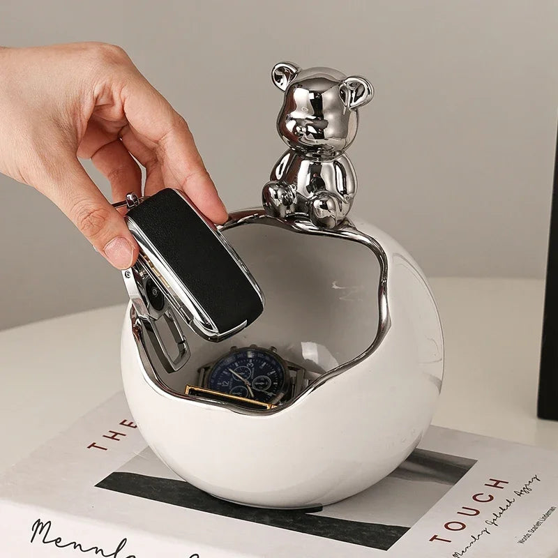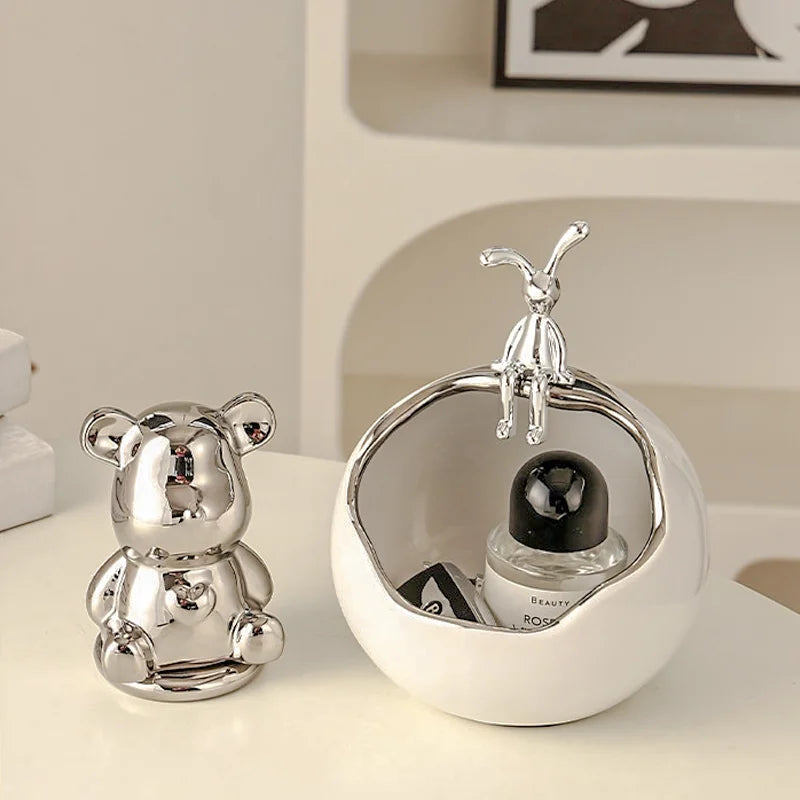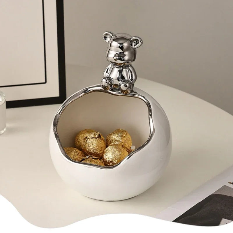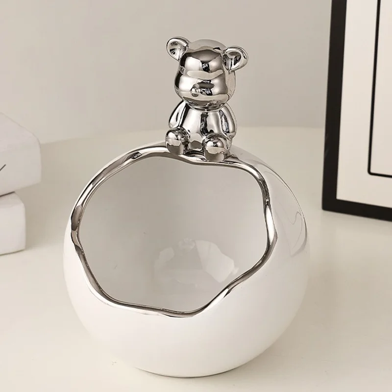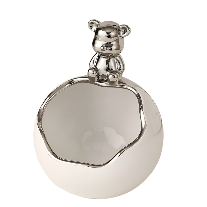 ✓ Elegante Ontwerp: De unieke berenvorm en glanzende wit-zilveren afwerking creëren een verbluffend middelpunt voor elke kamer, waardoor het een geweldige aanvulling is op je decor.