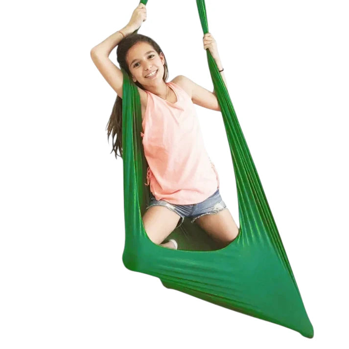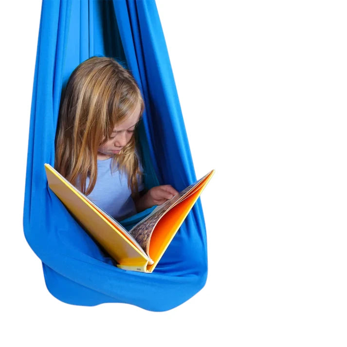 De CuddleSwing is een zachte stoffen schommel die speciaal is ontworpen voor gebruik binnenshuis. Het creëert een gezellige cocon waar kinderen kunnen schommelen, lezen of even wegdromen. Dankzij de stevige bevestiging en het comfortabele textiel voelt de schommel als een warme omhelzing, perfect voor rustmomenten of speelse beweging