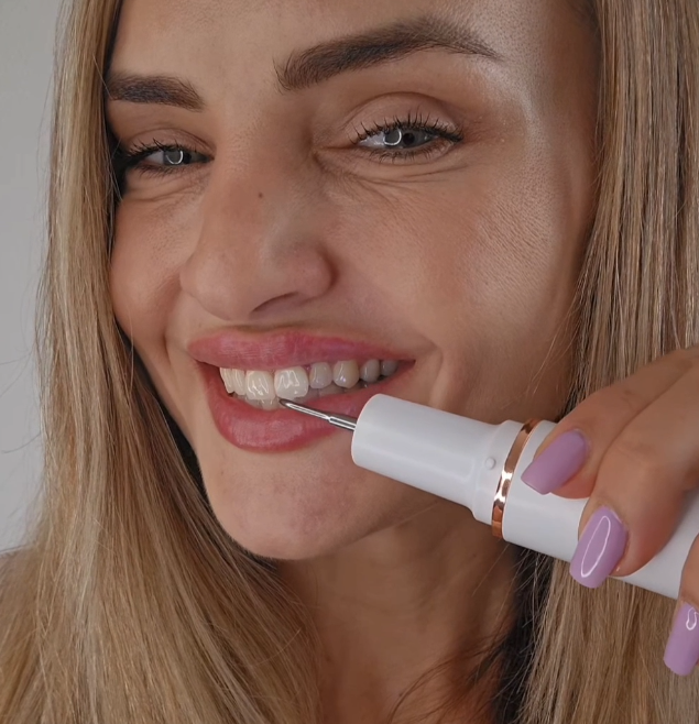 Dentify is een slimme, gebruiksvriendelijke tandreiniger waarmee je thuis tandplak, aanslag en lichte verkleuringen kunt aanpakken. De zachte trillingen en precisiepunt helpen je een frissere, schonere glimlach te behouden – elke dag weer.