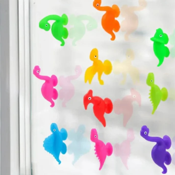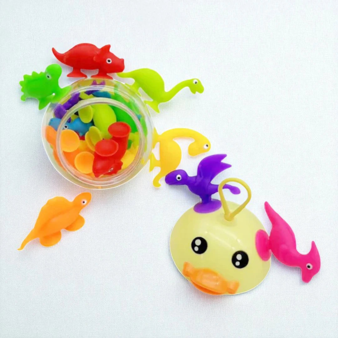 - 14x Dino’s met zuignap (diverse kleuren en vormen)