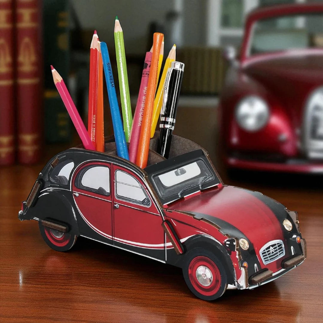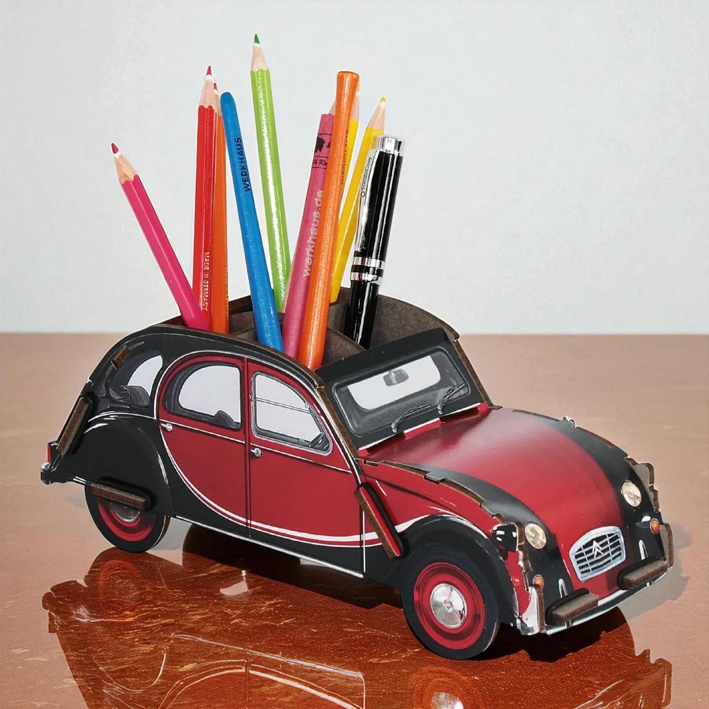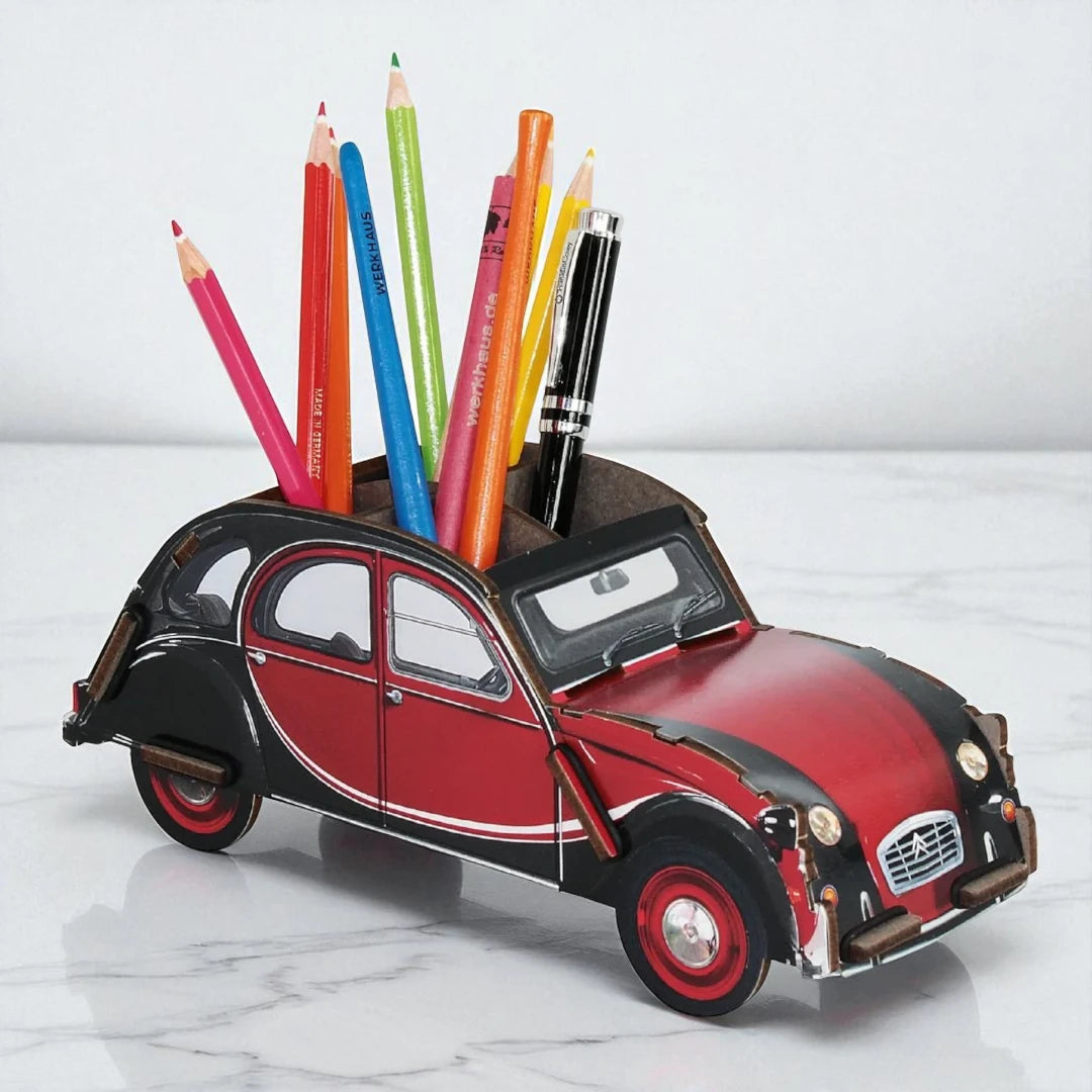 Voeg een vleugje Franse elegantie toe aan je werkplek met de DuckBox. Deze bijzondere pennenhouder is geïnspireerd op de iconische Citroën 2CV, ook wel liefkozend “lelijke eend” genoemd. In de exclusieve Charleston uitvoering brengt hij de nostalgie van de jaren ‘20 tot leven, terwijl hij jouw bureau netjes en stijlvol houdt.