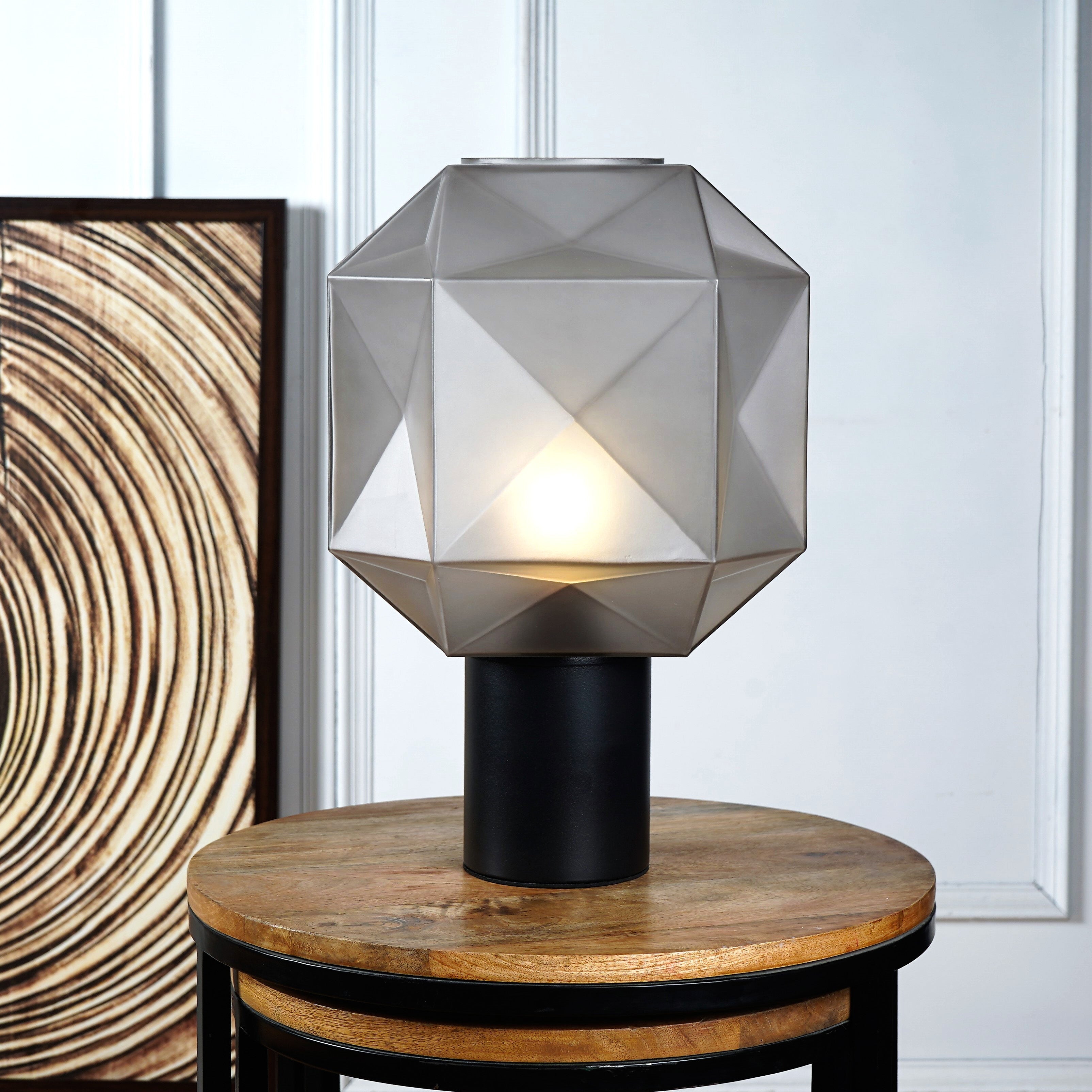 Breng sfeer en elegantie in je woning met de EtherealGlow tafellamp. Het strakke ontwerp met een rookgrijze lampenkap en geometrische glazen voet maakt deze lamp tot een stijlvol middelpunt in elke kamer. Stel je voor hoe deze prachtige lamp een warme gloed verspreidt in je slaapkamer of woonkamer, waardoor de ruimte direct meer klasse en sfeer krijgt.
