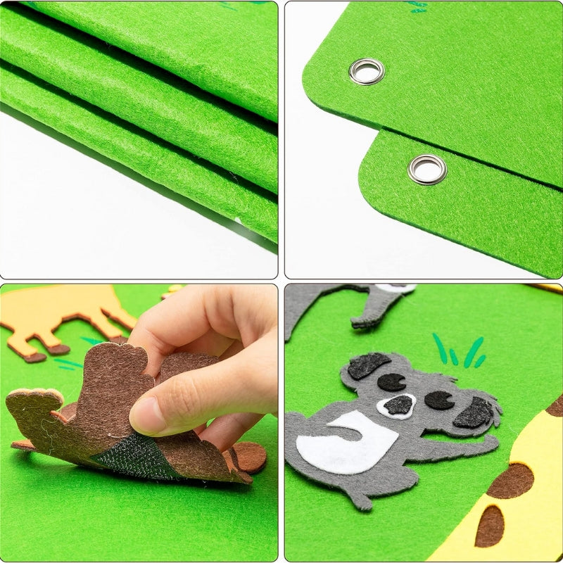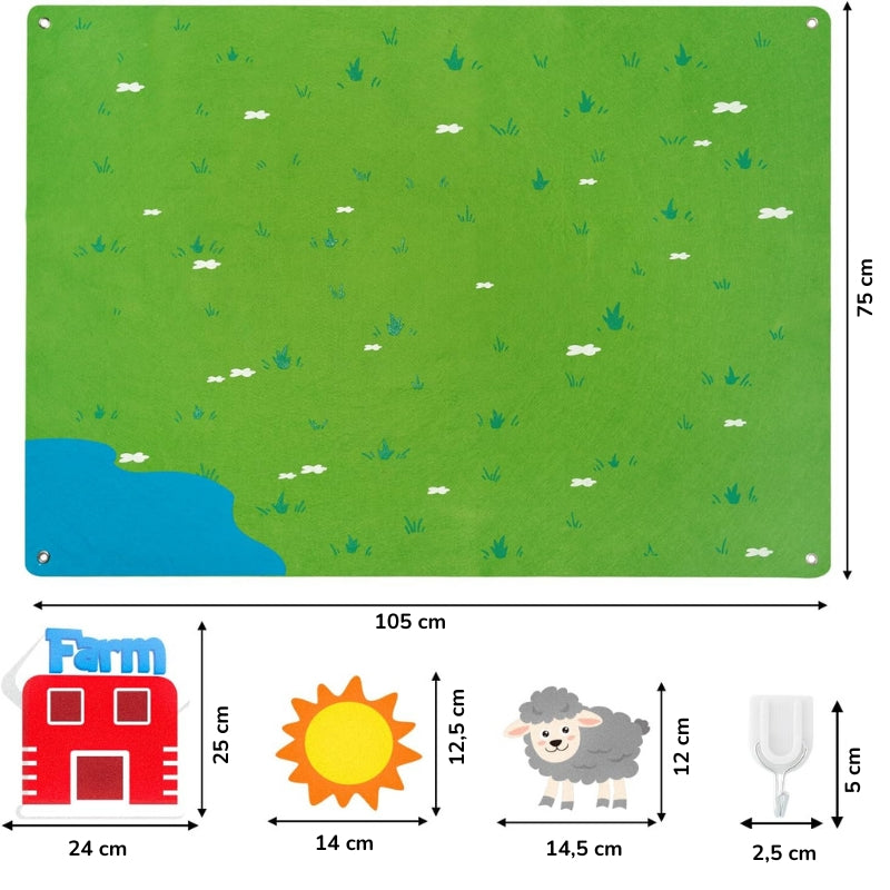 Het FeltPlay Montessori bord is speciaal ontworpen om kinderen spelenderwijs te laten leren. Met kleurrijke vilten vormen en figuren kunnen ze hun fantasie gebruiken, verhalen bouwen en fijne motoriek ontwikkelen – allemaal in lijn met de Montessori-leermethode.