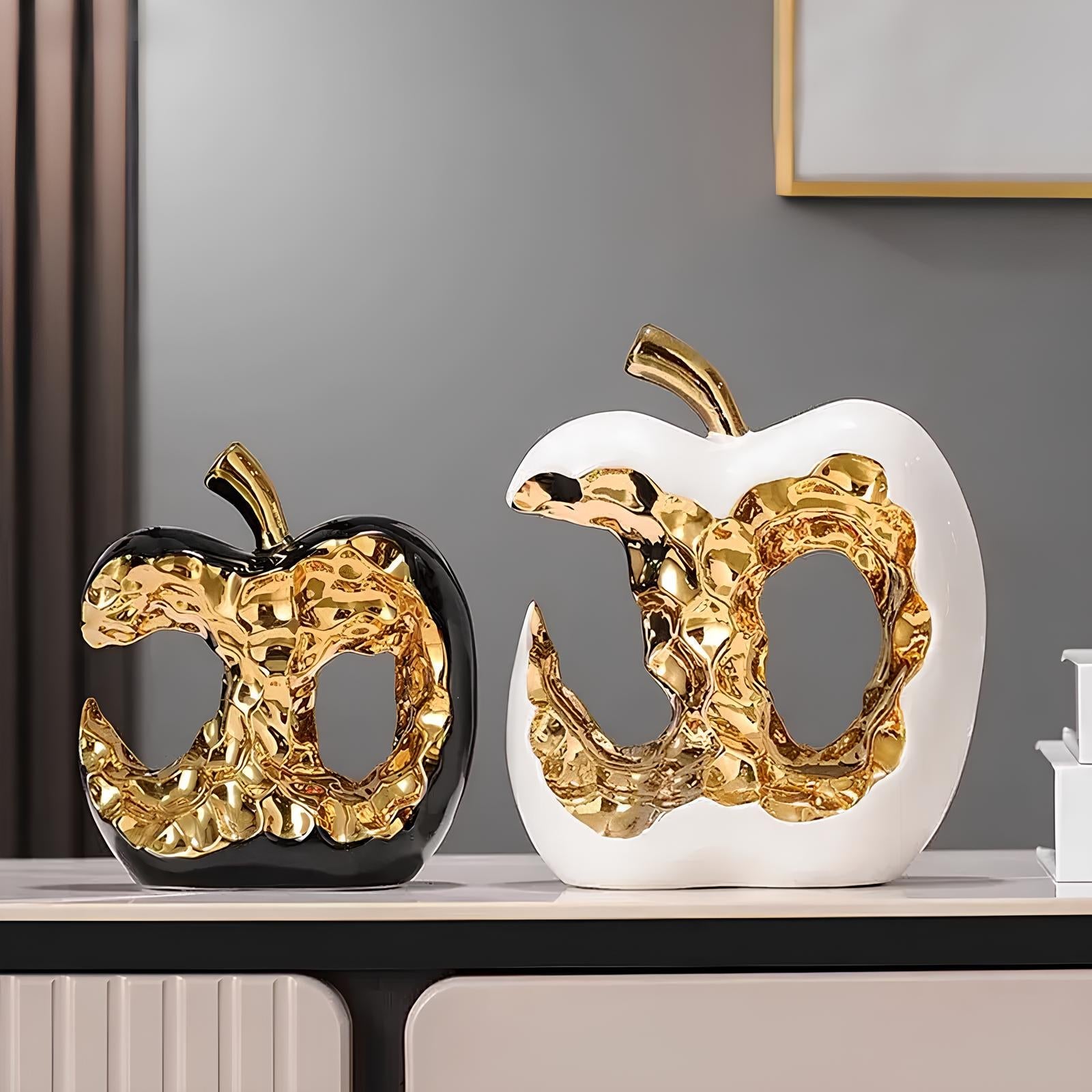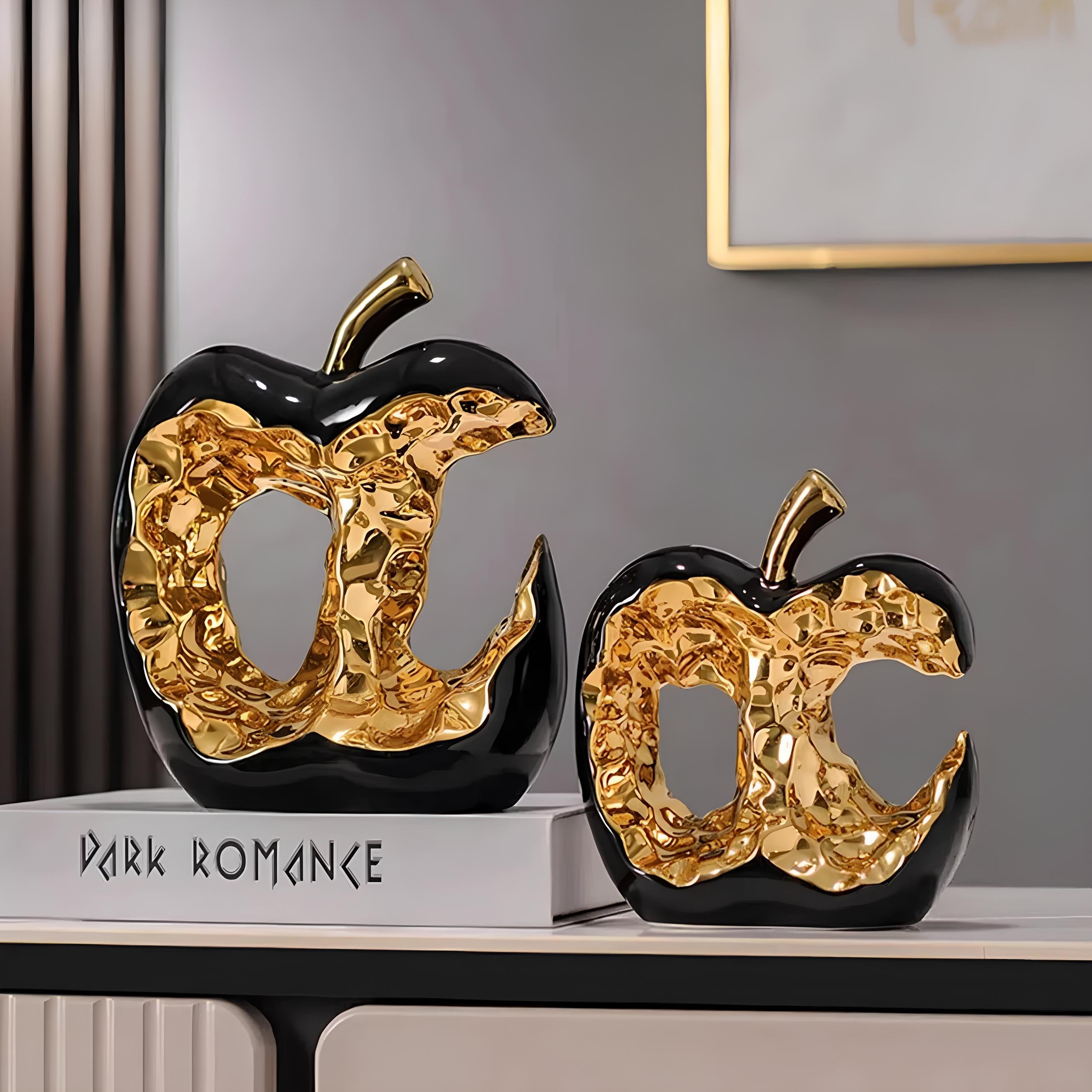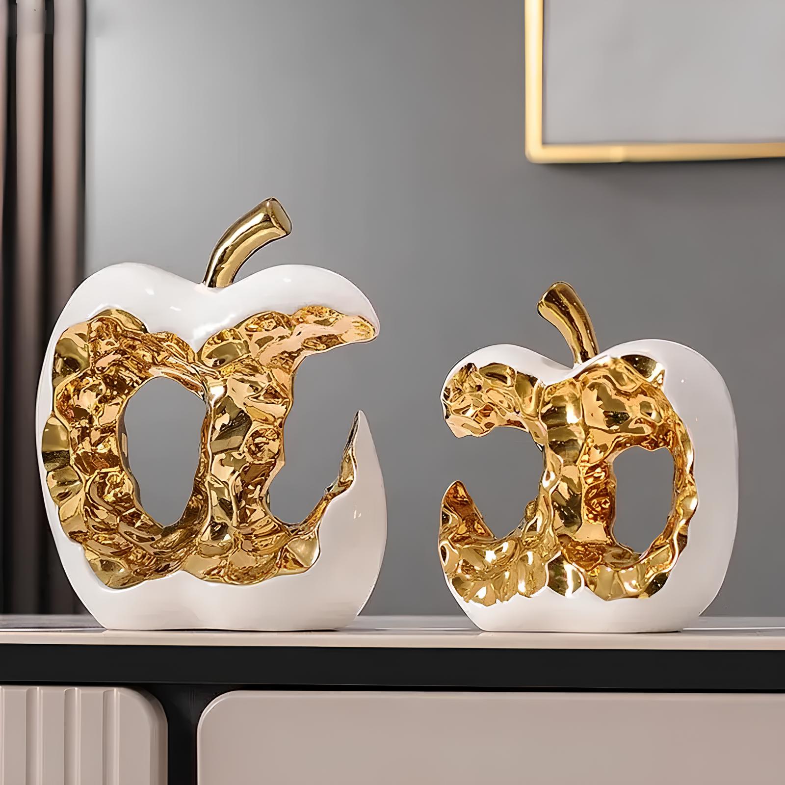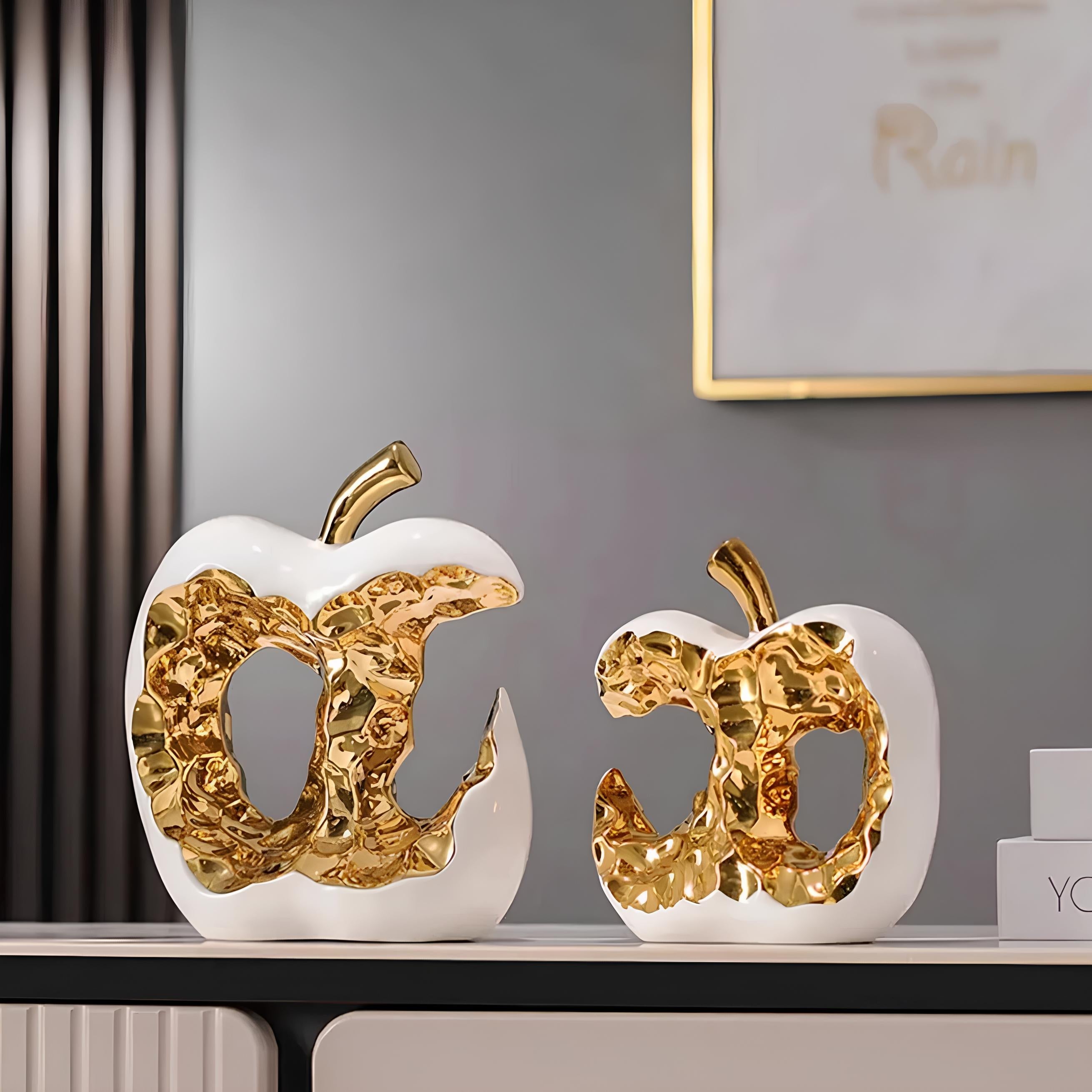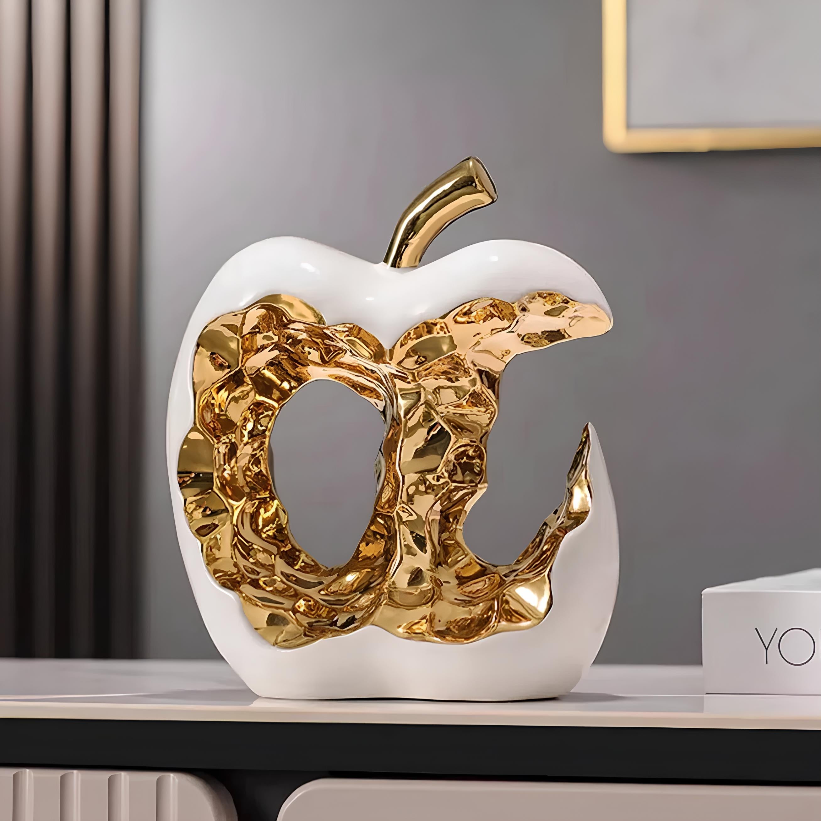 Verfraai je leefruimte met de GoudenKern Appel Sculptuur en breng een vleugje luxe en moderne elegantie in je huis.