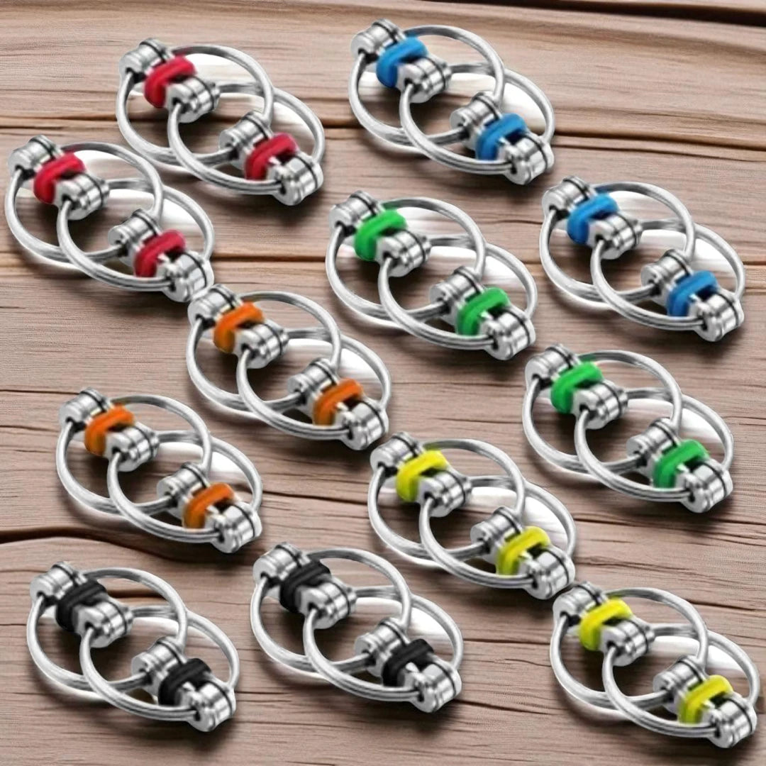 Hou je handen bezig en je hoofd helder met de Loopix Flippy Chain. Dit compacte fidget speeltje is gemaakt van stevige roestvrijstalen ringen en kleurrijke schakels, ontworpen om soepel te bewegen en je overal discreet bezig te houden.