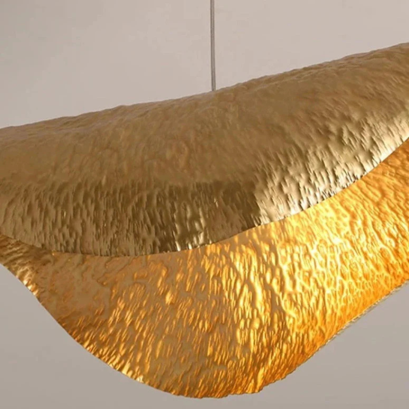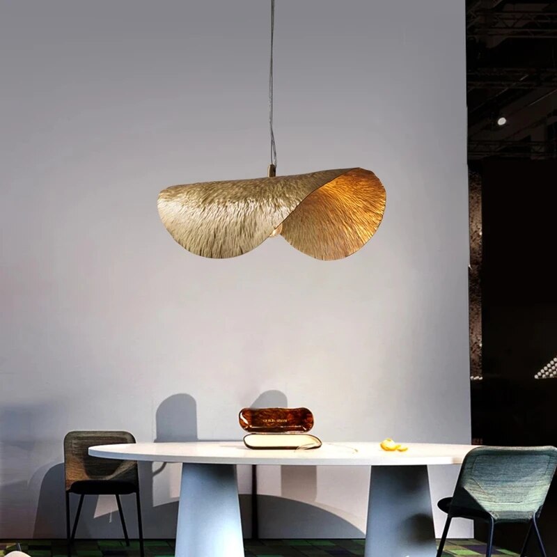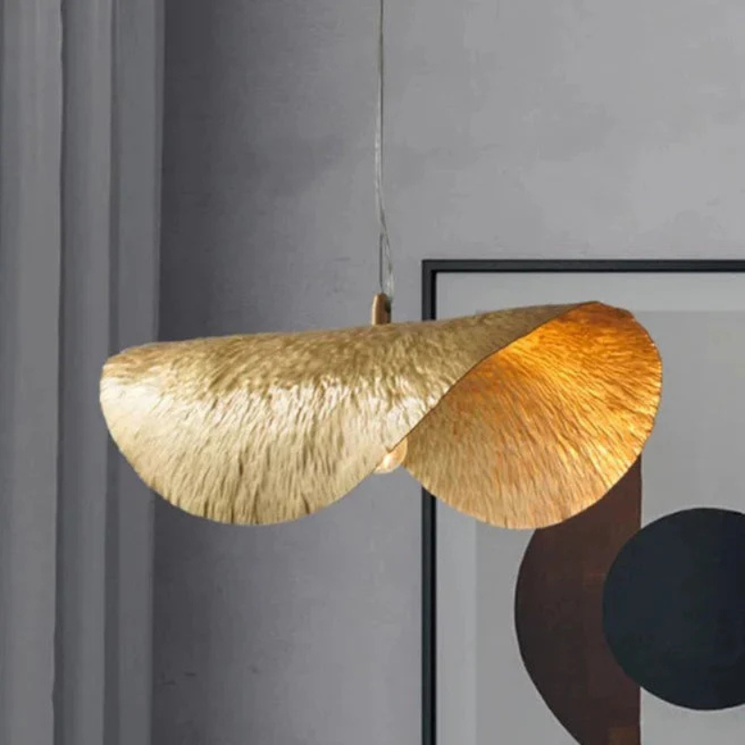 ✓ Uniek Ontwerp: Geïnspireerd door de delicate vorm van lotusbladeren, heeft deze hanglamp een gepolijste koperen structuur met een opvallende gouden afwerking, waardoor het een opvallend middelpunt in elke kamer is.
