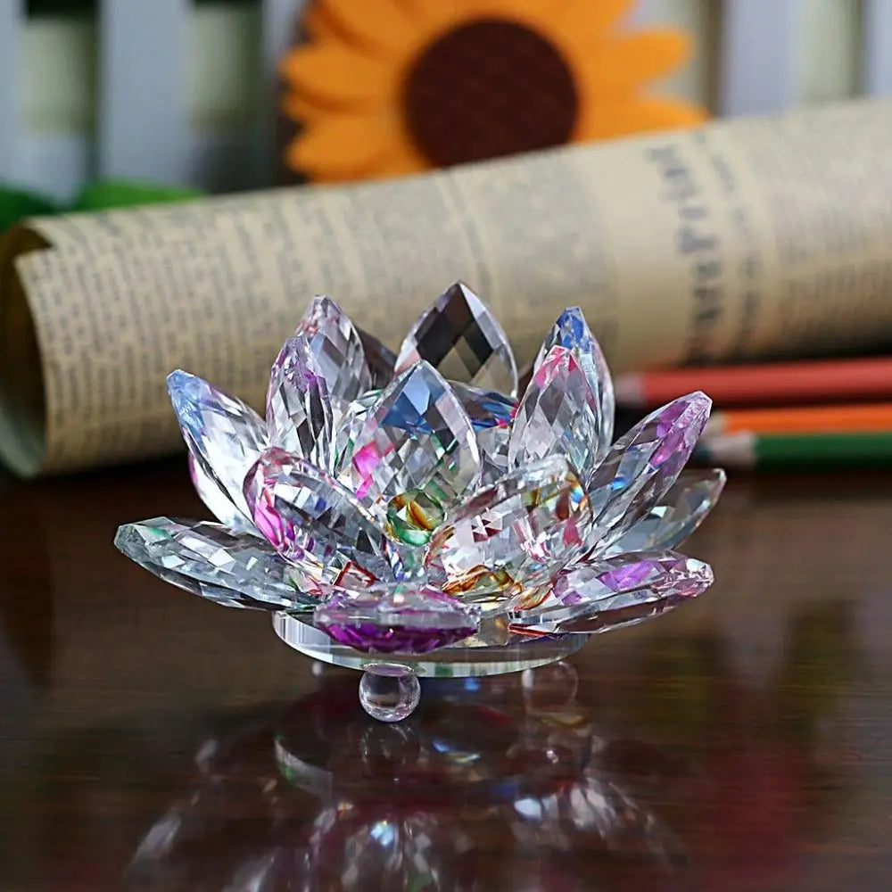Breng een vleugje elegantie en positieve energie in je ruimte met de LumiLotus Kristallen Lotus Bloem. Vakkundig vervaardigd uit hoogwaardig kristal, reflecteert elke bloemblad het licht prachtig, waardoor er een levendige kleur en schittering ontstaat. Bekend om zijn symboliek van geluk, gezondheid en liefde, blijft deze lotus voor altijd stralen zonder te verwelken, een tijdloos pronkstuk.