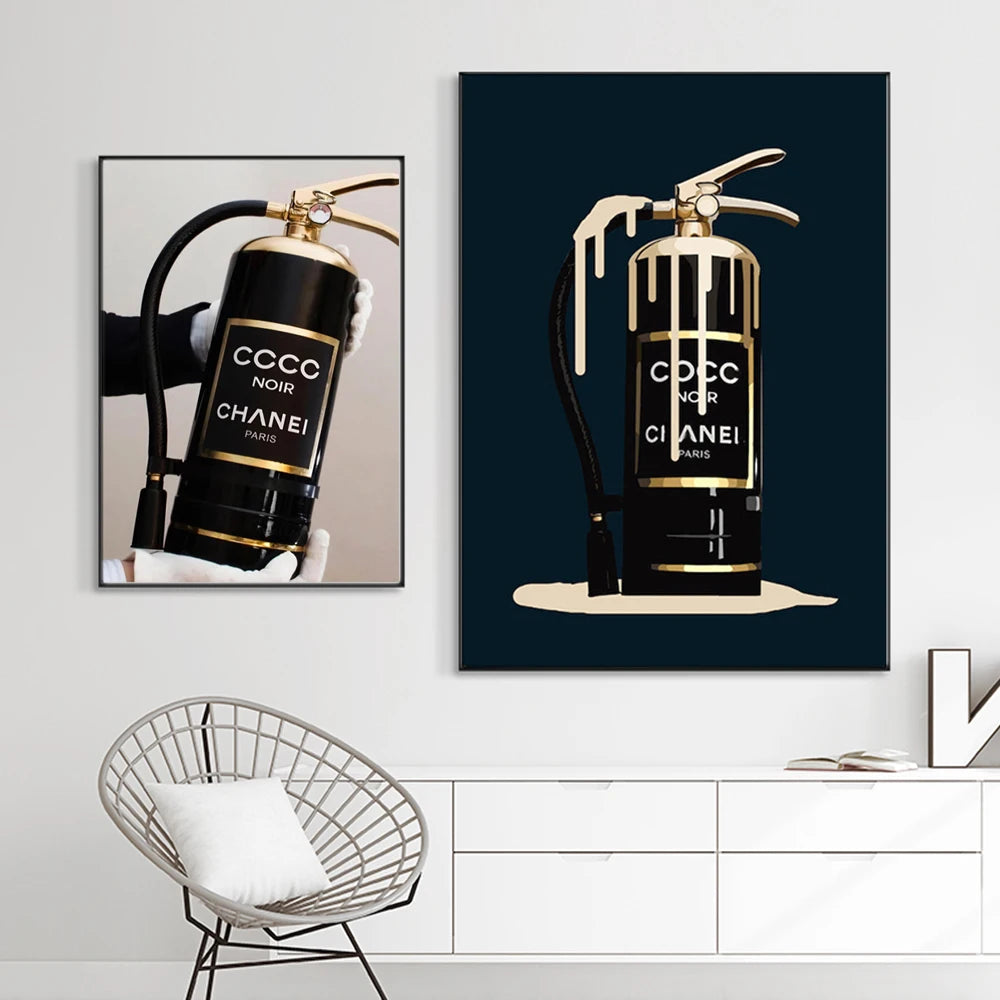 Transformeer elke kamer in een visueel statement met de Luxe Vlam Gouden en Zwarte Brandblusser Kunstprint. Deze opvallende afbeelding combineert gedurfde metallic tinten met een moderne uitstraling en brengt je muren tot leven.