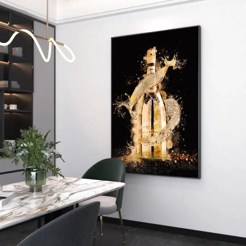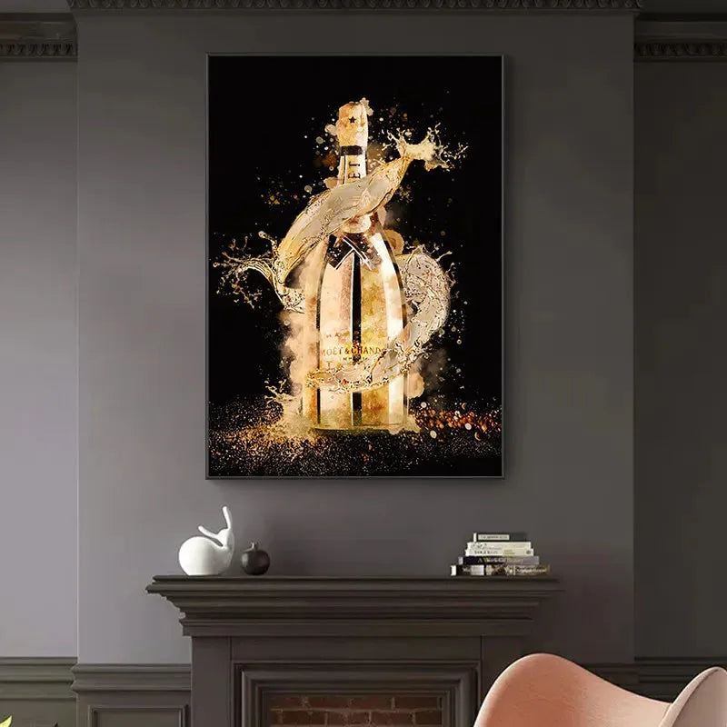- LuxeVibe Abstract Canvas Schilderij van Gouden Champagnefles