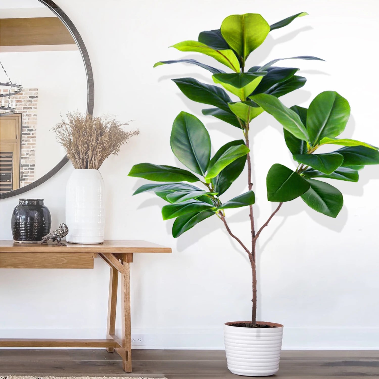 Breng de natuurlijke schoonheid van magnoliabomen in je huis of tuin met de Magnolia Bloei Kunstmatige Rubber Vijgenboom. Deze indrukwekkende boom heeft een hoogte van 86-135 cm en beschikt over levensechte bladeren en bloemen die een verfijnde uitstraling aan elke kamer of buitenruimte geven. Of je hem nu op je balkon, in je kantoor of in je woonkamer plaatst, het is het perfecte statement stuk.