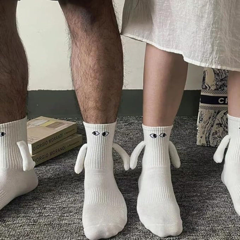 De MagnoStep sokken zijn niet zomaar sokken: hun magnetische sluiting maakt ze praktisch en handig, terwijl het unieke design met ogen en handen een speelse twist geeft aan je dagelijkse outfit. Perfect voor wie houdt van opvallende details én gemak.