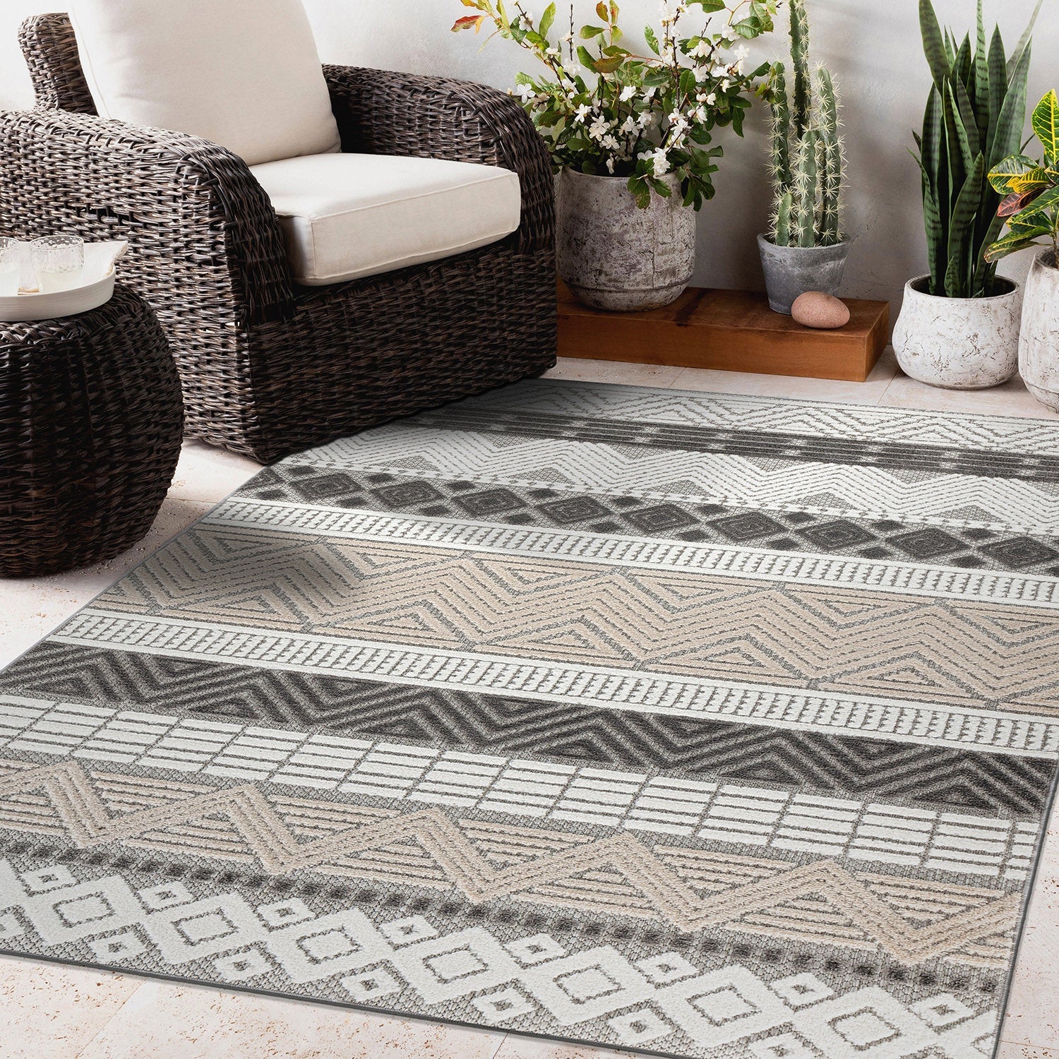 ✓ Modern Boho-Design: Het geometrische patroon voegt een verfijnde en artistieke uitstraling toe aan elk interieur of terras.