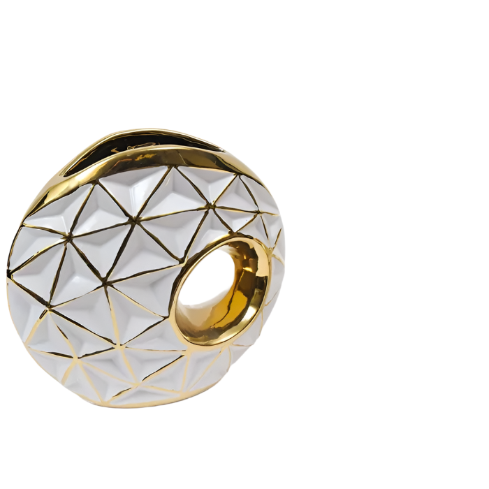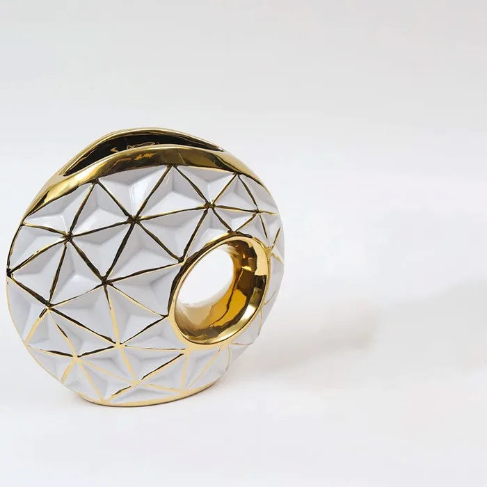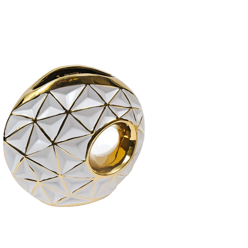 Geef je interieur een tijdloze uitstraling met de Opuluxe vaas. Deze vaas combineert Europese luxe met modern Amerikaans design en heeft een prachtige keramische afwerking in goud en zilver, perfect voor het verfraaien van elke ruimte.