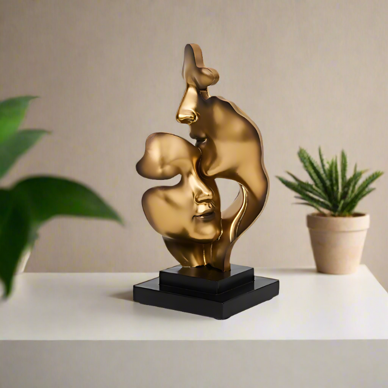 - Plaats de sculptuur op een prominente plek, zoals een dressoir, tafel of plank, om de gouden afwerking en het artistieke ontwerp volledig tot zijn recht te laten komen.