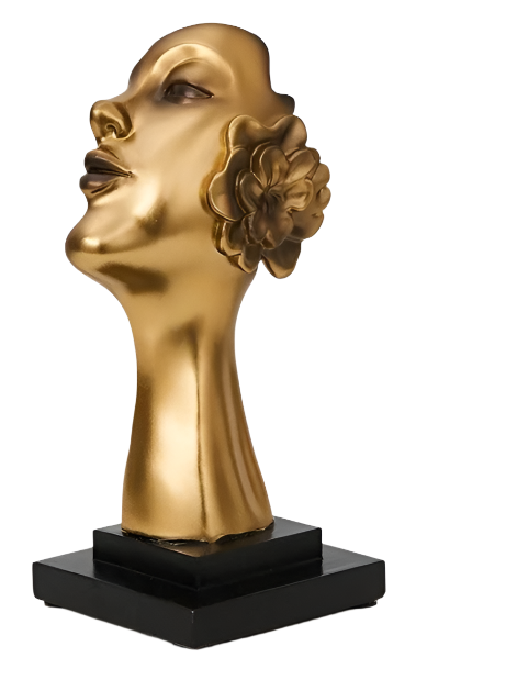 ✓ Elegant Ontwerp: Deze sculptuur toont een prachtig afgewerkt gezicht in een schitterende gouden kleur, waardoor het een opvallend middelpunt in je interieur vormt.