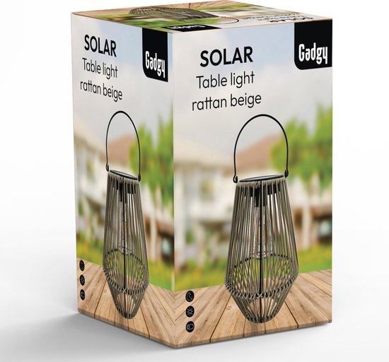 Creëer een gezellige en stijlvolle buitenomgeving met de Solaris Zonne-energie Rattan Tafellamp.