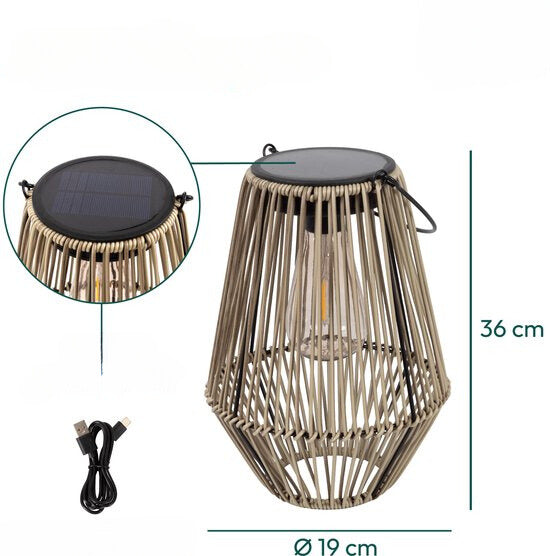 - 1 x Solaris Zonne-energie Rattan Tafellamp