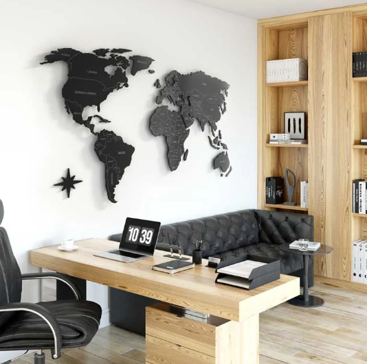 ✓ Unieke 3D Diepte & Design: De zorgvuldig uitgesneden houten continenten creëren een prachtige gelaagdheid, waardoor een dynamische en luxe uitstraling ontstaat.