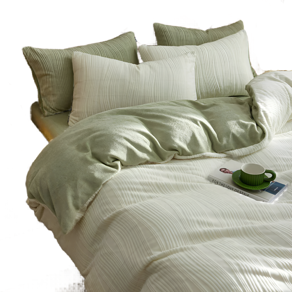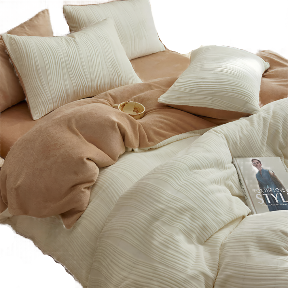 Creëer een oase van rust met de Velvona Minimalistisch Fluwelen Bedtextielset. Gemaakt van warm melkfluweel en afgewerkt met een subtiel golvend patroon, brengt deze set een stijlvolle uitstraling en ultiem comfort naar je slaapkamer.