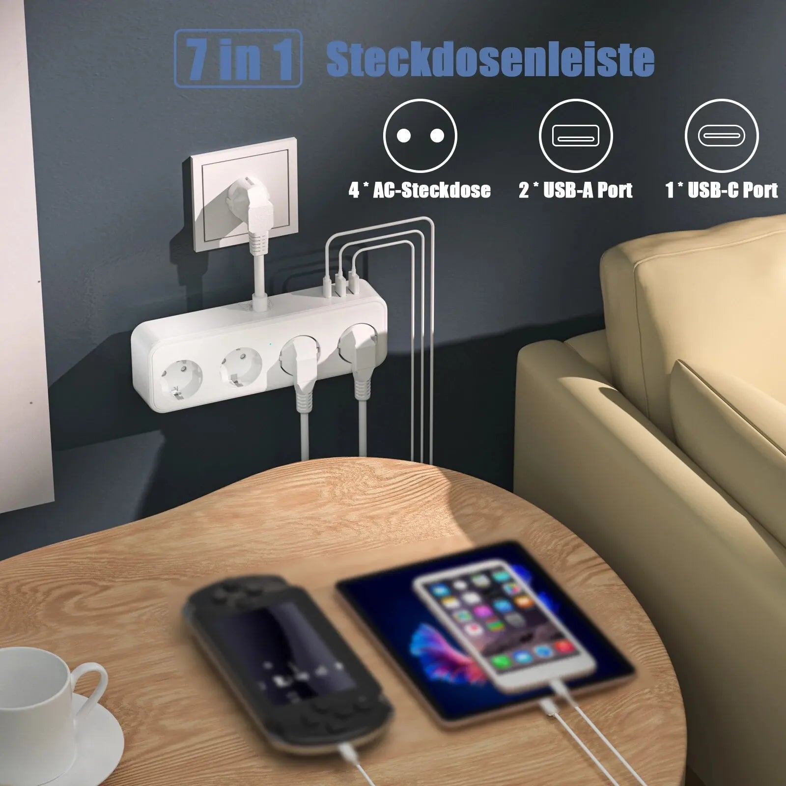 ✓ Compact ontwerp, maximale capaciteit: Met vier stopcontacten en een kort snoer van 0,5 meter is Voltora ideaal voor kleine werkplekken of nachtkastjes.