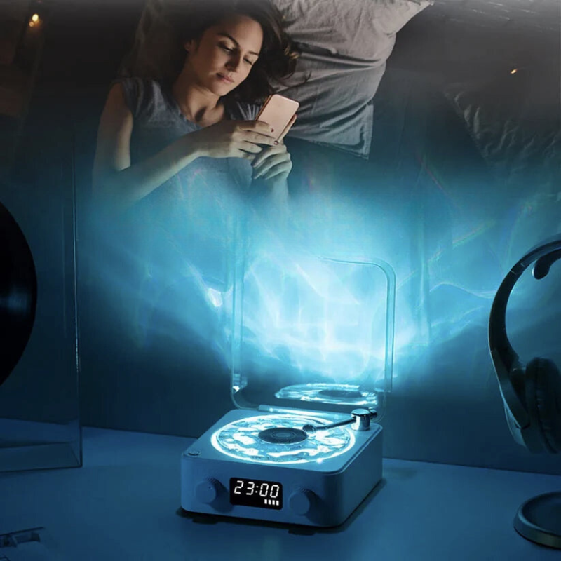 De Wavescape Retro Platenspeler combineert nostalgische charme met moderne technologie, en is een echte eyecatcher voor elke kamer. Met de transparante draaiende plaat en dynamische verlichtingsstanden creëert deze platenspeler een unieke sfeer voor muziekliefhebbers en retrofans.