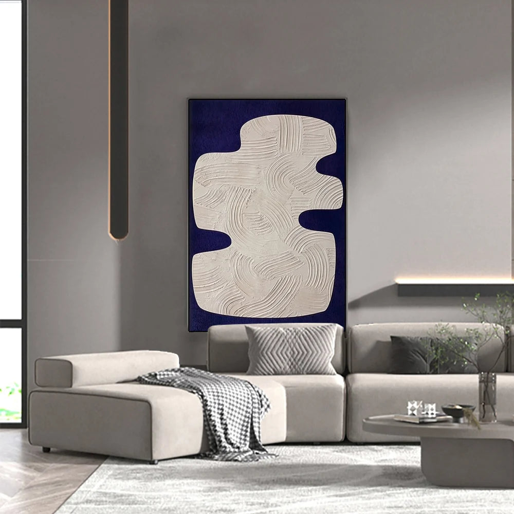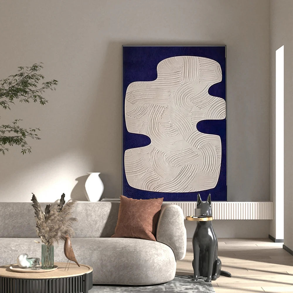 Transformeer je woonruimte met de Zenith Japandi 3D Wanddecoratie. Dit prachtige stuk abstracte kunst combineert rustgevende tinten blauw en wit om een serene blikvanger te creëren die je huis verrijkt met stijl en rust.